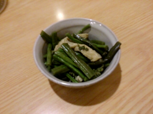 最初のお通しの時は東北系の料理かなと思ったがよく見るとしまらっきょとか豆腐ようとか沖縄っぽい料理がある。
