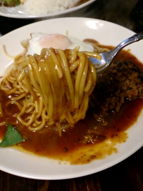 男前を決めるなら、男前 極2000円に挑戦するべきでしょうが若くないので普通のハンバーグ900円に目玉焼き100円トッピングで注文。