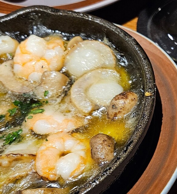 海老と帆立のアヒージョ、パテカン、マルゲリータ。