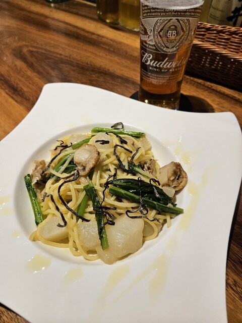 カンパリオレンジ、シラスと九条ねぎのパスタ、バットラビット、ゆきおんな