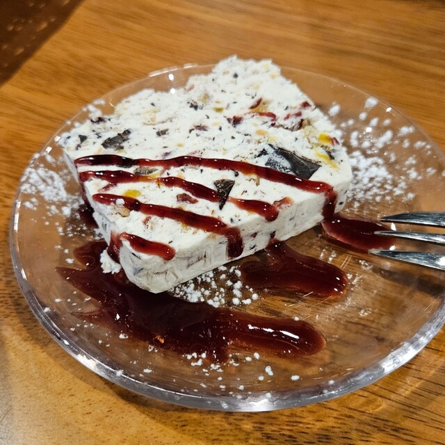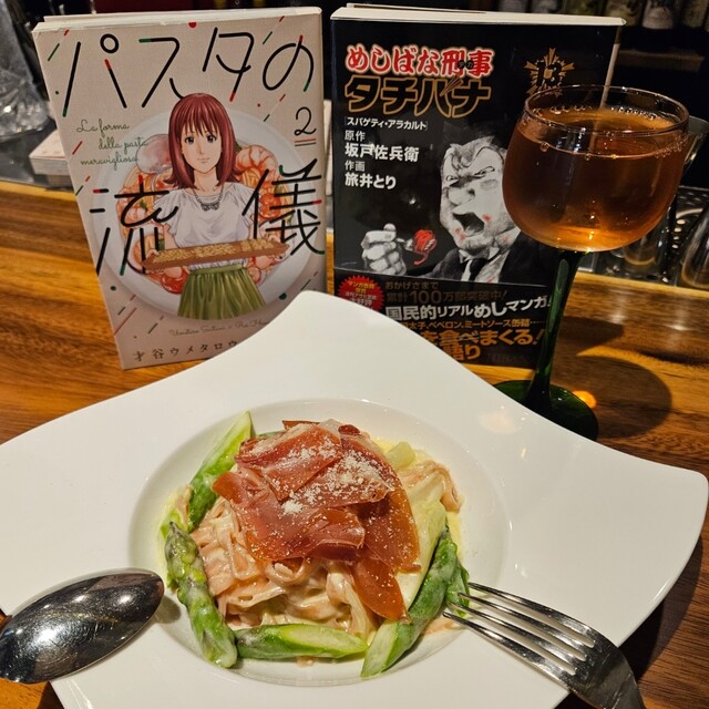 生ハムとアスパラの桜タリアテッレwithオレンジワイン、カッサータ♥️