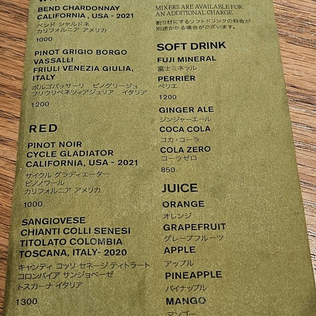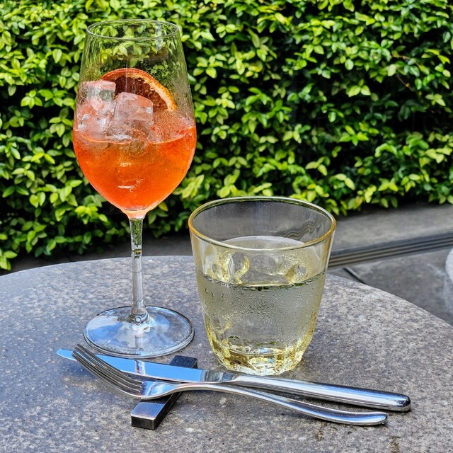ドリンクはアペロールスプリッツとイタリアワイン、ピノグリージョ(白)とサンジョベーゼ(赤)をグラスで戴きました。