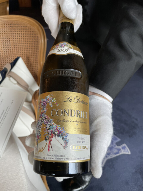 2本目もソムリエさんに選んでいただきました。この後のメインの鴨~チーズまで白で合わせたいとお願いし、ローヌの白。すごい!いままでのんだことない味。美味しい!!