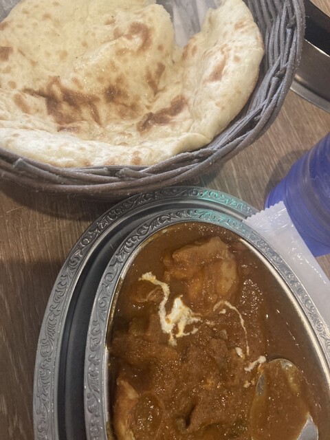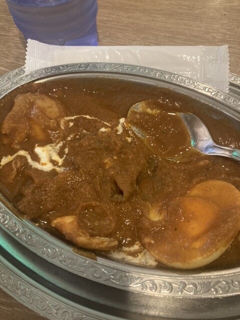 前日から何カレーにするべきか悩みXの情報をみるとチキンマサラカレーが賞を獲ってるさらに卵入りとの事なのでこちらを注文 辛さは中辛に 番号メモを渡され待機 中庭の庭園が綺麗 外人さんもうっとりしてます お水はセルフ ネパールの店員さんに番号を呼ばれたので取りに行きます 大きくカットされたお肉 なす 卵は半分 まずはナンふわふわー大きい 美味しい カレーも程よい辛さ マサラ正解 食べごたえのあるお肉達 私には丁度良い量でした 隣の人あんばたナン食べてる 後ろの席はジンギスカン 皆んな幸せそうで美味しい顔してる 温泉も古くてノスタルジー満載
