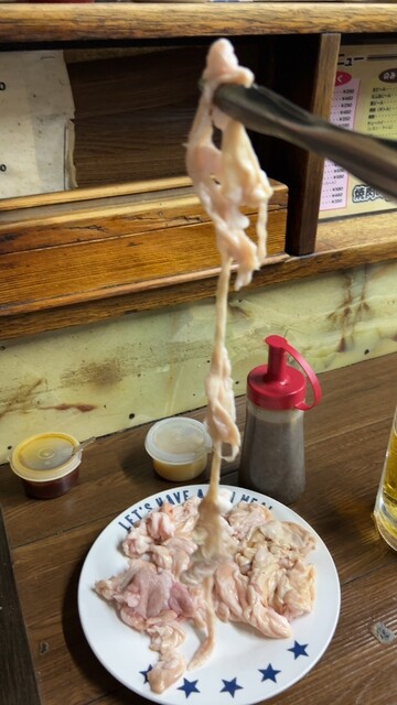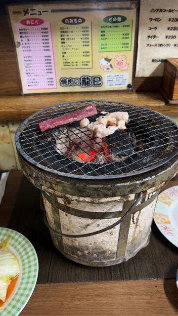 ホルモンを注文して七輪で焼くと、煙がまた一段とモクモク出る。