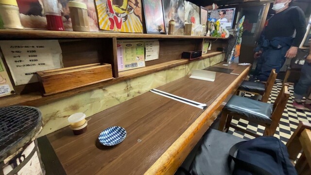 予約して旨を伝えるとカウンターに案内される。すでに炭火の七輪が用意されている。店内は煙モクモク。