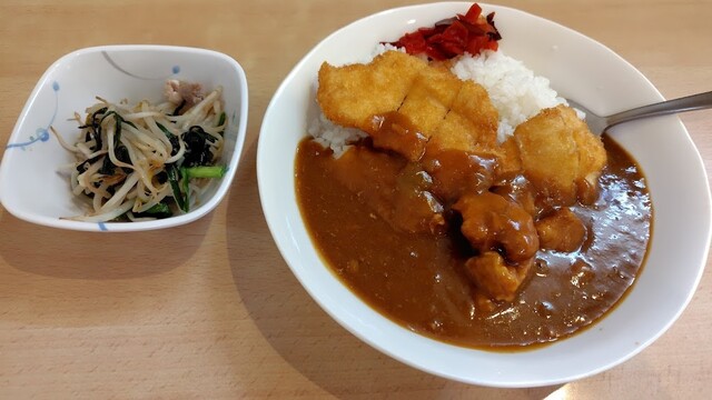 カレーは普通の家庭用(業務用?)のカレーなんだけどなんともうまい。相変わらず四角くゴロゴロと豚肉。チキンカツカレー食べてんのに!