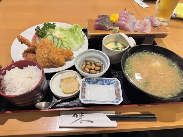 メニューは、ヒレカツとサザエの壺焼き付きの