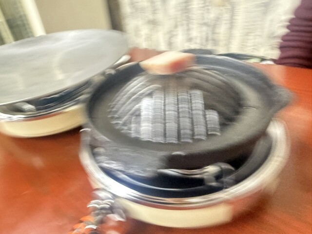ジンギスカンと、ホルモンは違う鍋でやきます。