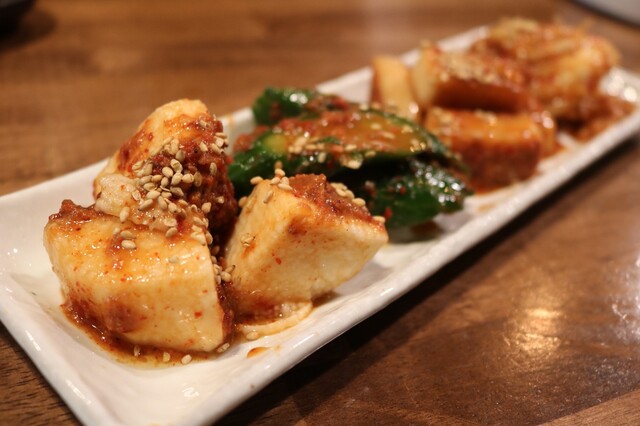 まずはキムチ盛り合わせでウォーミングアップ。