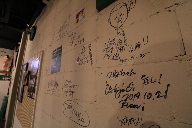壁に直接サインを書くスタイルで著名な方のサインがいっぱい。