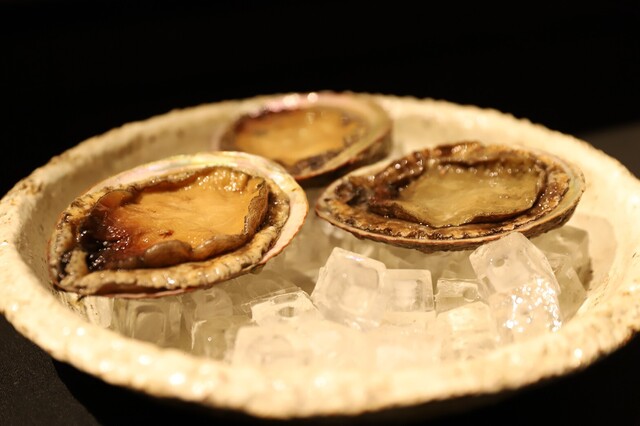 アワビの肝と卵黄を茶碗蒸しのように仕上げています。