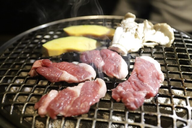 ジンギスカン鍋ではなく炭火で焼く羊。