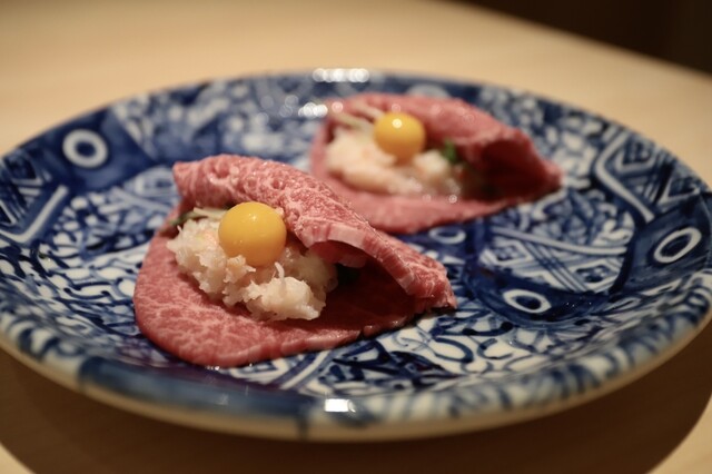 和牛と本鮪のユッケドッグ