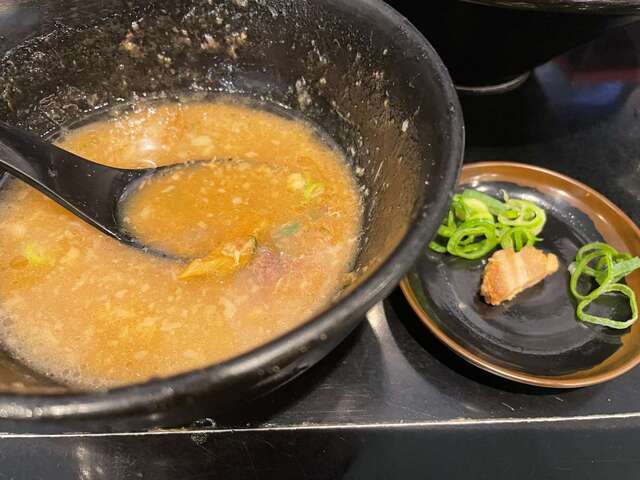 すごくシンプルですが、つけ汁は他の無鉄砲系列のラーメンよりも更にこってりしています。麺に絡みやすいように、細かな肉片?があるのが特徴的だと感じました。