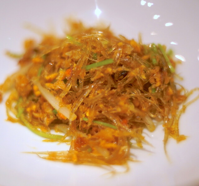 イソギンチャクのミソと蟹の風味で、春雨を炒めた料理である。