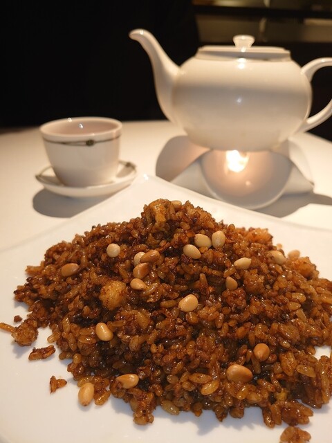 松の実のせ牛挽き肉入りたまり醤油チャーハン
