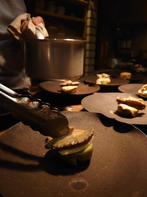 -鮑の蒸し焼き/美茄子/燻製チーズ