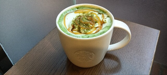 今朝は「新宿三井ビル店」で、「玉露抹茶ラテ」のトールサイズをマグカップで注文。カスタマイズでキャラメルソースを追加しました。新年らしい華やかな味わいを楽しむことができました。