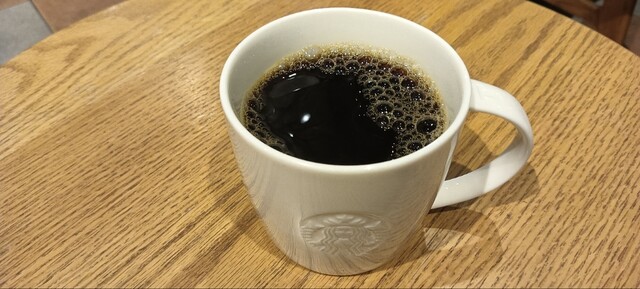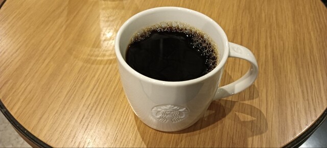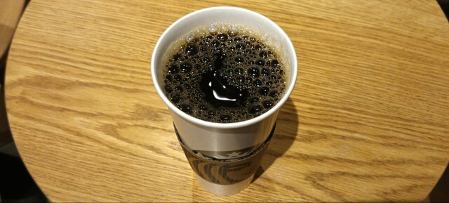 連休明け、火曜日の正午前に来店。「パイクプレイス ロースト」をホットのベンティーサイズで飲みました ( カスタマイズでハチミツを4周かけてもらいました ) 。