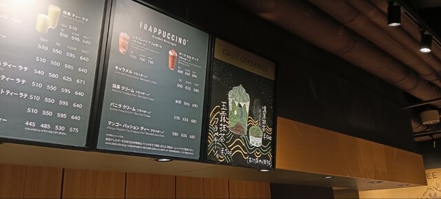 9月2日 (火) の正午過ぎ。昼食を終えた午後のひととき、スターバックス西新宿三井ビル店へ。「エスプレッソ アフォガート フラペチーノ」と「マンゴーパッション フラペチーノ」を飲むも、もう少しくつろぎたいと思い、新発売から三度目の「涼み抹茶ムースティー」をオーダー。前回と同じく「ムース抜き、抹茶パウダー少なめ」をカスタマイズ。