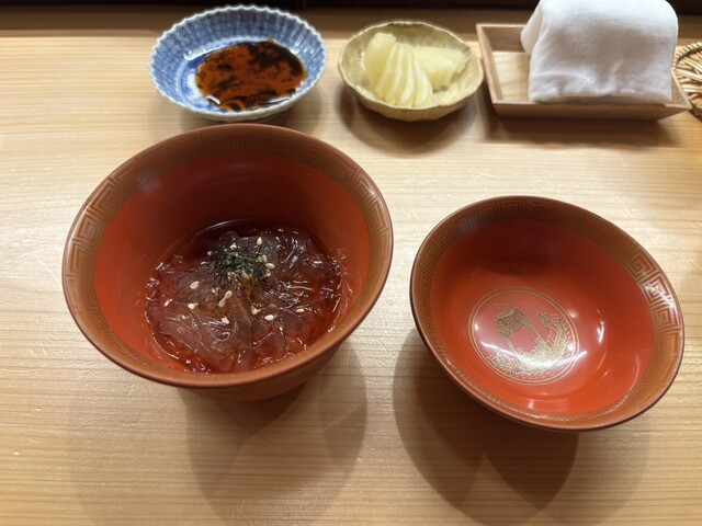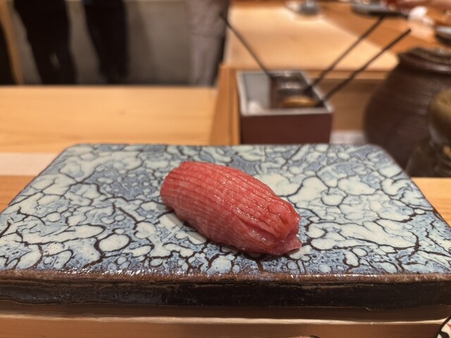 鮨さいとうizmとオリジナリティを組み合わせたスタイル。入店即目の前で切られるシャリは赤酢ながらマイルドでやや硬めのオールマイティタイプ。夏ながら魚も素晴らしく産直の朝締めのネタが多め。所作も綺麗で紳...