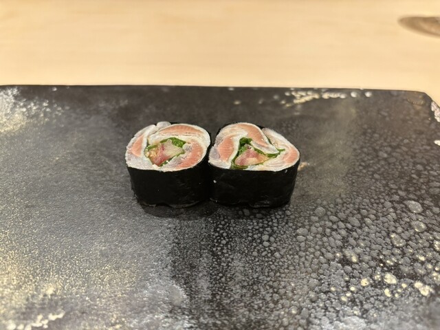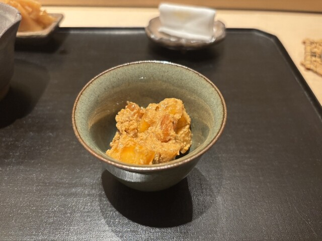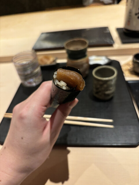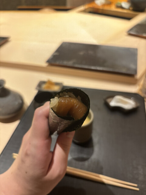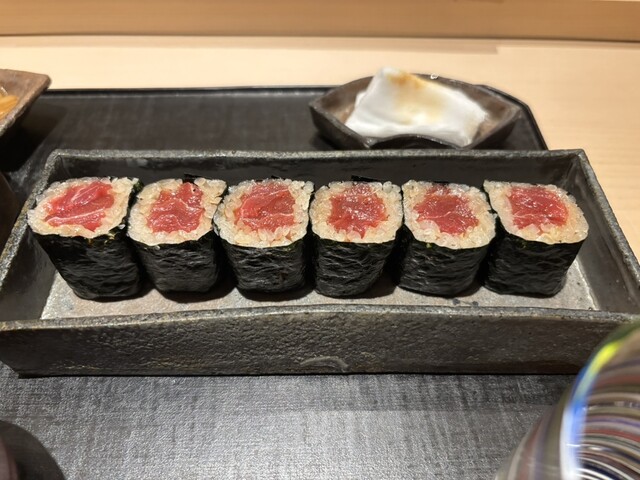 また、仕込みもめちゃくちゃこだわりを感じます。席数が多く単価が高く個室もあるからこそ実現できるキッチンスタッフの人数の多さのマンパワーを最大限に活用した贅沢な仕込み、マグロなんかはヅケの浸透圧を活用しつつ、切りつけた後に丁寧にスジを全部取っているため、舌に全く違和感を感じることなくマグロの美味さを全開に引き出しています。9月のマグロでこの美味しさだと冬のマグロを想像したら末恐ろしいです。