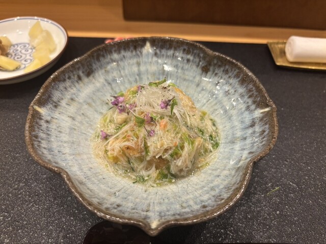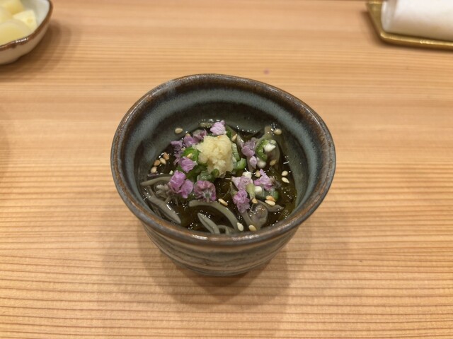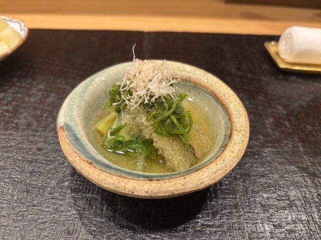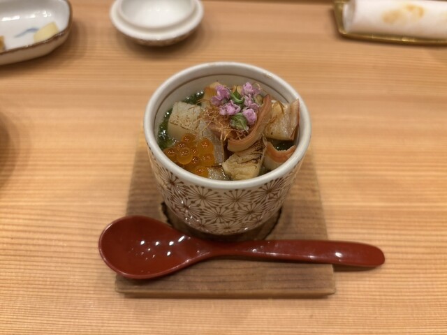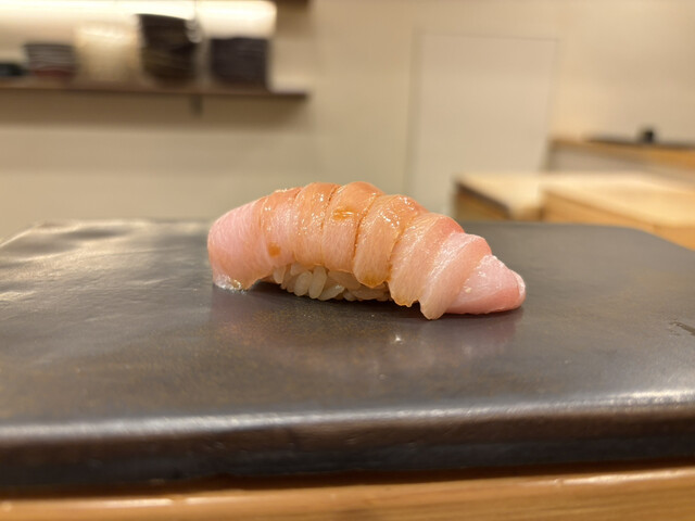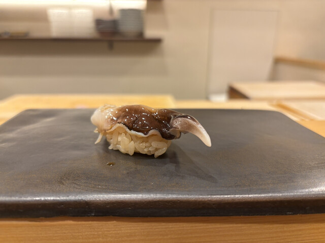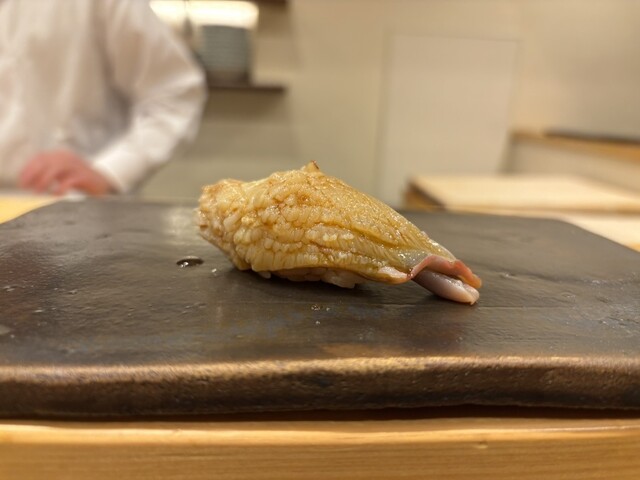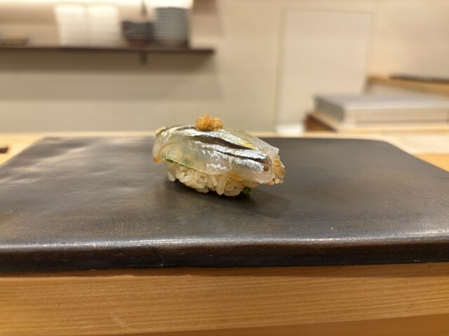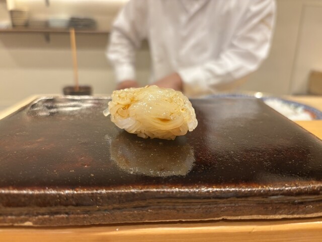 今年12回目の訪問。相変わらずオペレーションも素敵で全く間延びせずにツマミと握りが出てきて楽しめます。メニューも毎回変わるので何回来ても満足度が高い。個人的にはここの瀬付き鯵とカワハギの握りが好き!