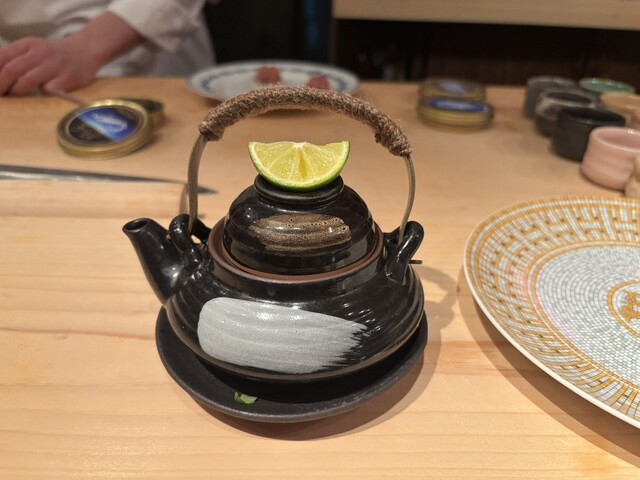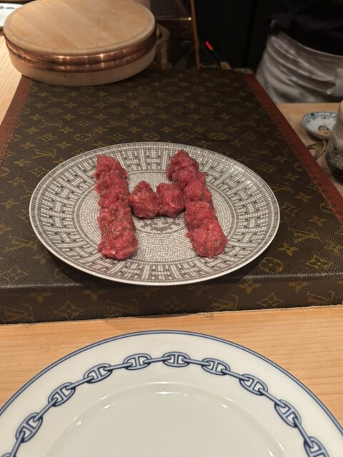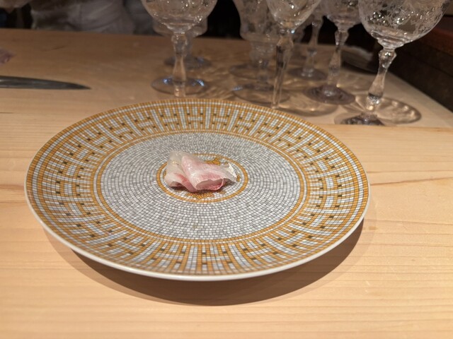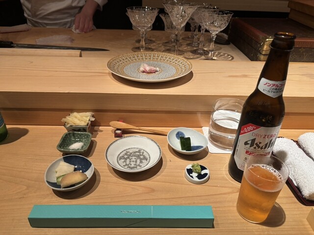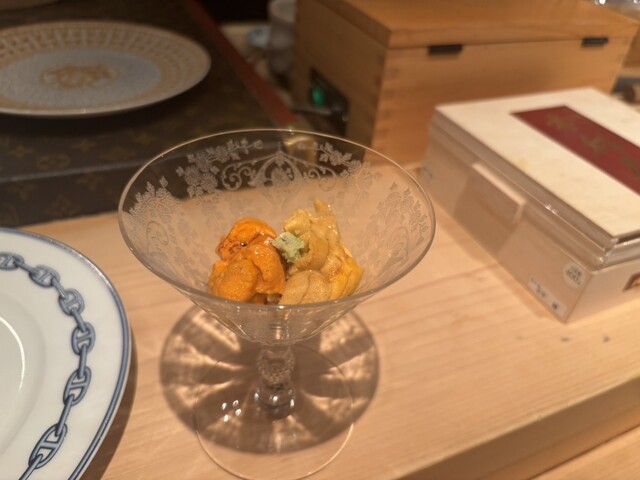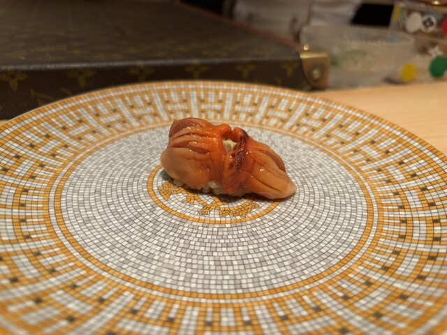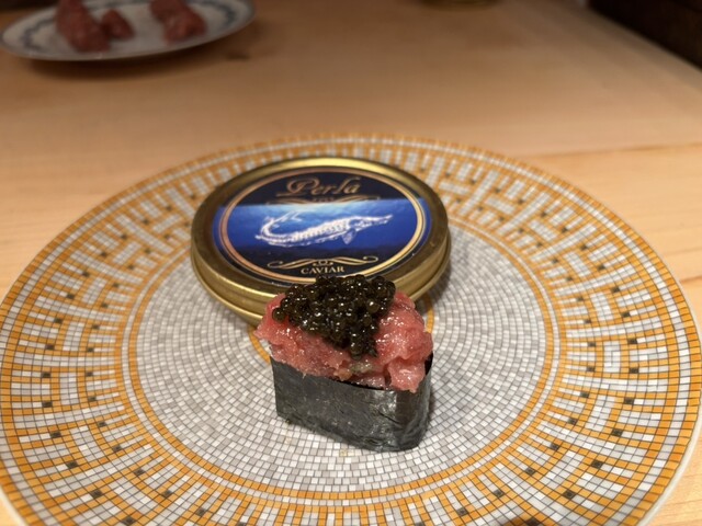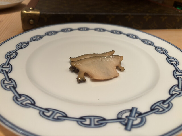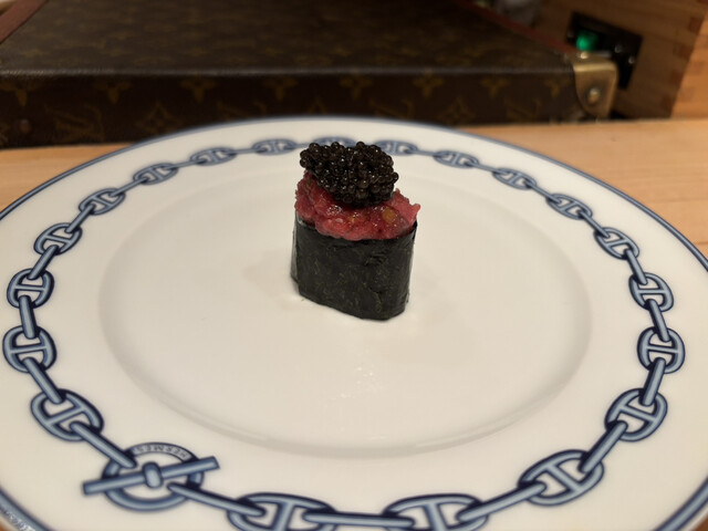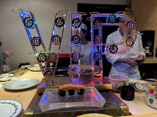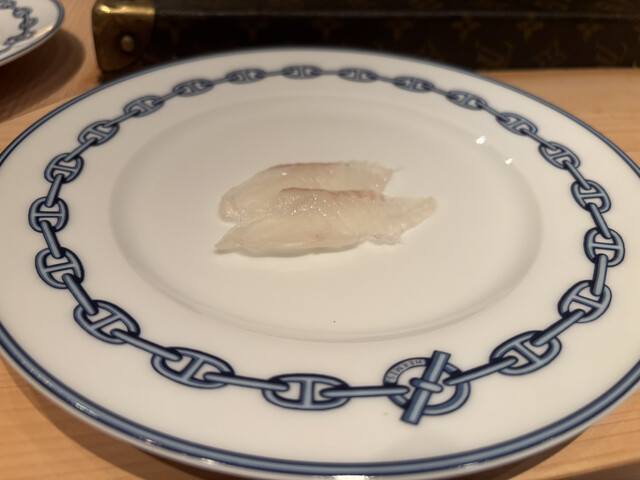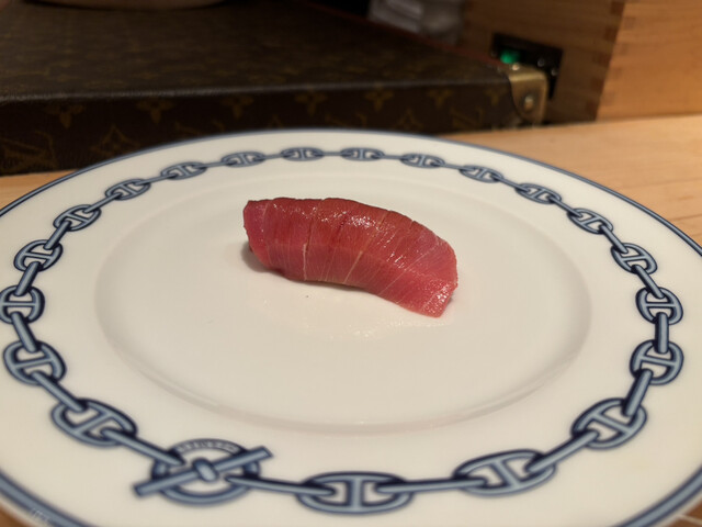 お箸はティファニー、お皿はエルメス、ネタケースはVUITTONとブランドもの尽くしでかなり派手ですが、客層はお鮨好きの方が多く、落ち着いている雰囲気でした。