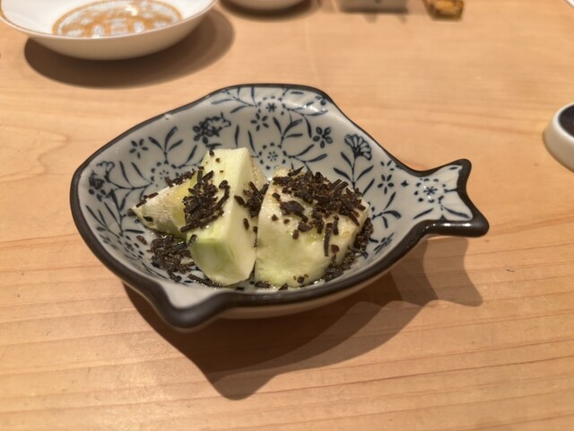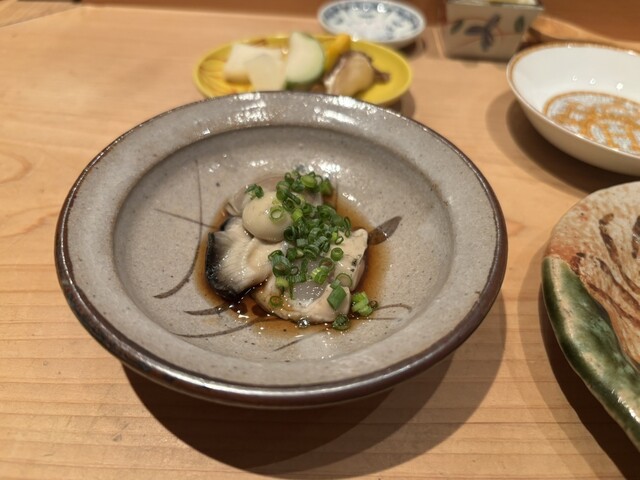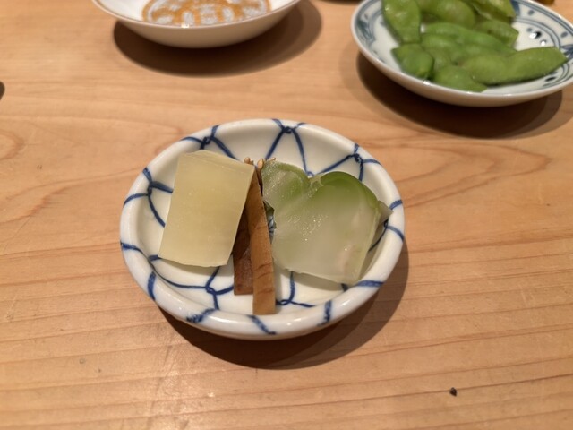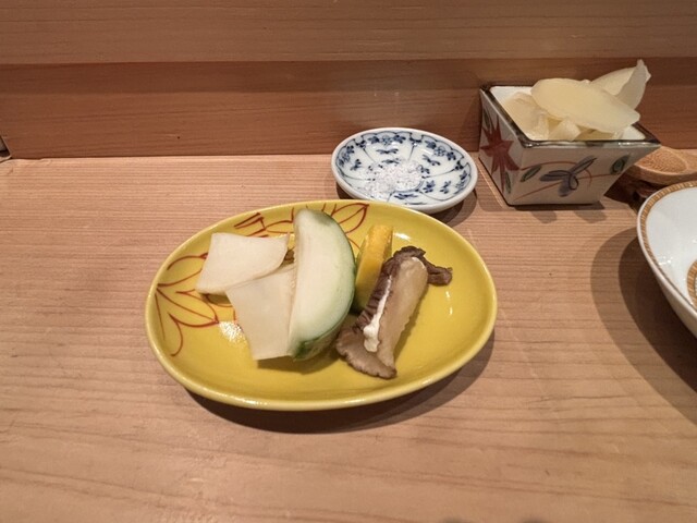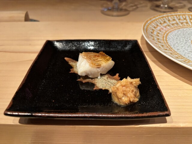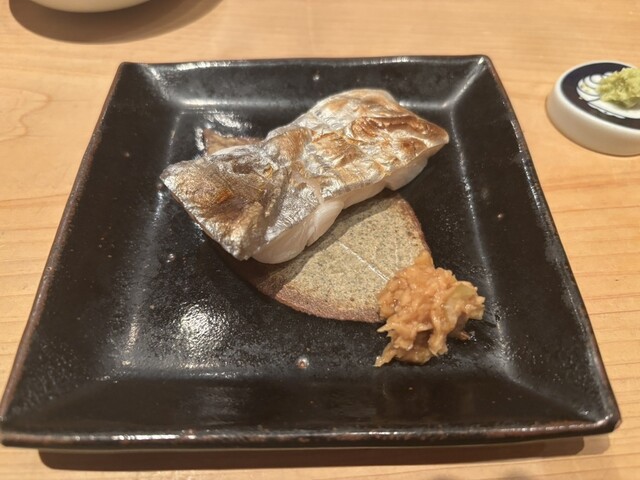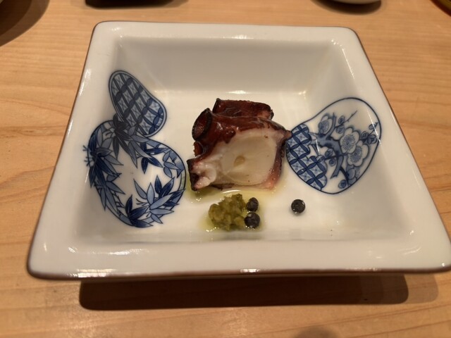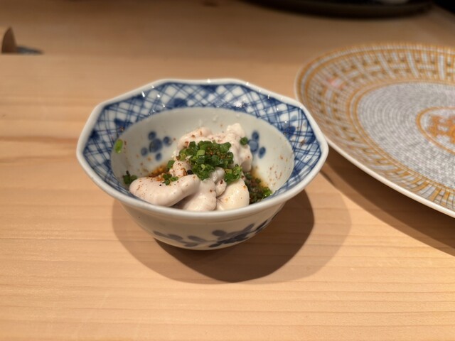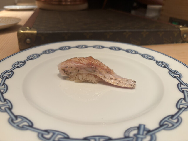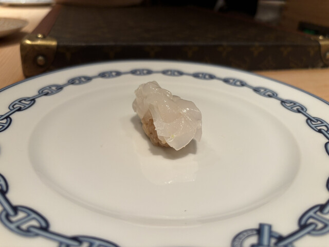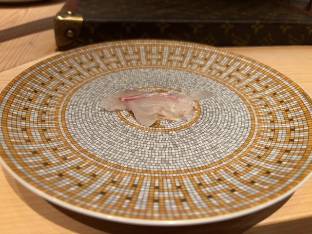ツマミと握りが順不同に出るスタイルで、最初にタイのお刺身からスタートでした。