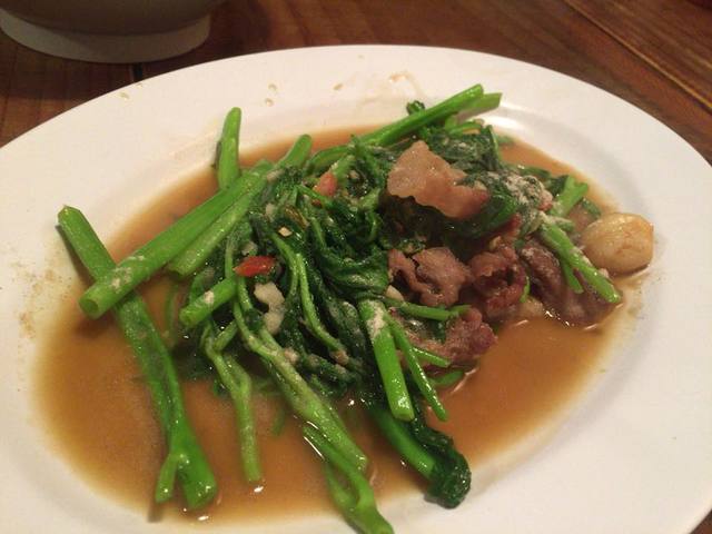 最後に牛肉と卵を炒めたもの(?)と練り物の揚げ物をいただきます。