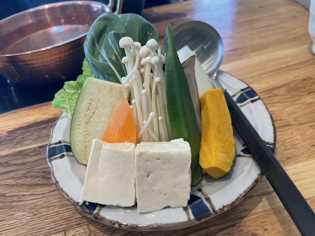 豆腐、かぼちゃ、もやし、オクラなどが付いていてとても盛りだくさんです。