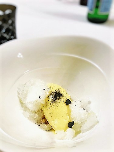緑のムース状のものは、なんとなく刺激の強い柚子胡椒のような味で、お魚にはいいスパイスになりました