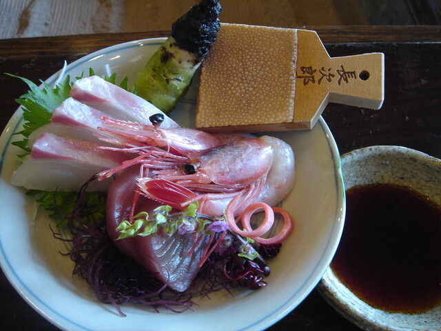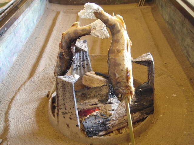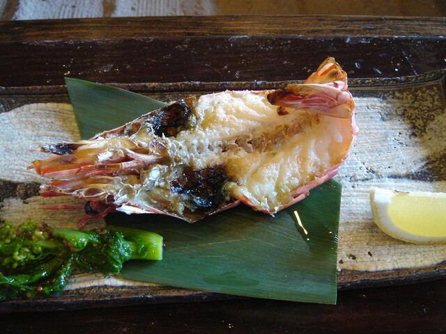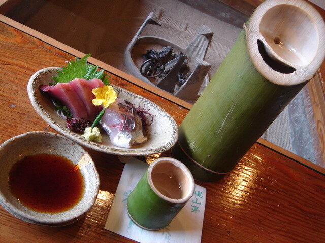 今朝掘ったばかりという筍を囲炉裏で焼きながら、まずはヱビスビール750円を飲みくつろぐ。初夏の彩あふれる先付けから箸をつけ、山葵をすりながら鰹とカンパチのさしみをつまむ。ゆっくりした時間といつもの美味しさに話もはずむ。女将さんの話もまた楽しい。新潟の酒・吉乃川一合1000円の入った竹筒を囲炉裏に差し込み温めて呑む。あらためて日本人である幸せを実感。