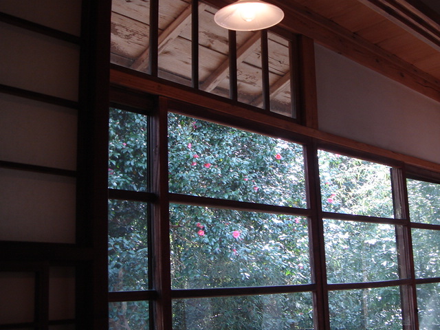 外に咲く椿の花が美しく、野鳥が遊びに来ている。草季庵という独自性をもっと追究しても良いと思う。