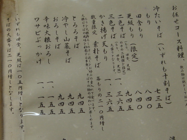 店主と言葉を交わすチャンスがあったので味が薄い理由を尋ねてみた。多分新蕎麦の風味を生かすためかと想像したが、夏と冬の季節のバランスを考えて夏は辛目、冬は薄目にしてるとの答えであった。