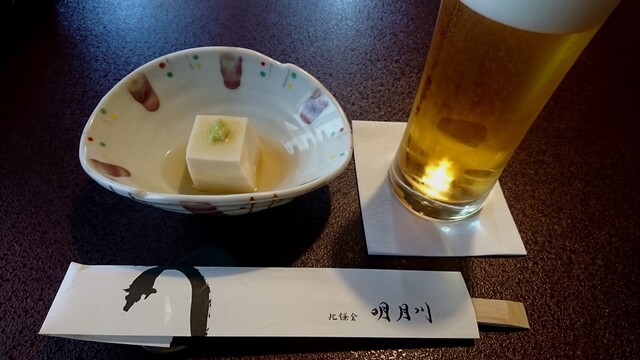 冷えた生ビール(中)650円を飲みながら先付の黒胡麻豆腐を頂く。