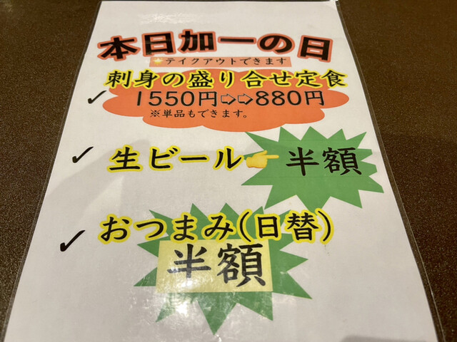 旬の刺身盛合せテイクアウト(加一の日利用)/内容変更後