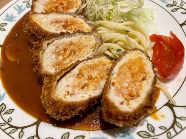 チーズを鶏肉で巻いて揚げたチキンロールカツに、