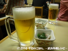 もちろんとりあえずビール。ラガーと一番搾りが選べるってうれしいわ♪