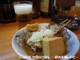 登場したのがよーく煮込んだ牛スジ串2本とこれまたよく煮込まれたお豆腐。