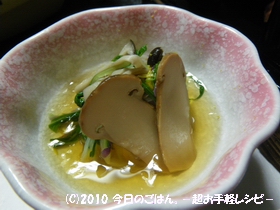 松茸・貝柱・水菜のおひたし、土瓶蒸し、柳川と、季節のモノだし、松茸さんもちらほらと。