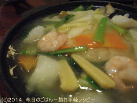 五目あんかけ焼きそばのご登場。これにスープと杏仁豆腐がついて半額で445円!