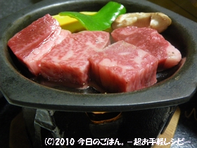 あわびの踊り焼きありーの、和牛の陶板焼きありーの。