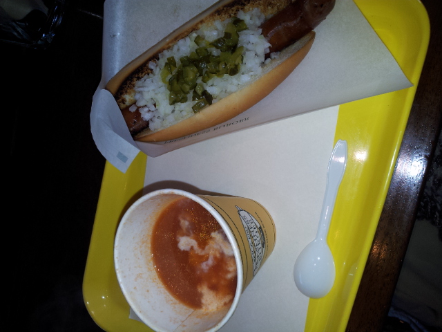 フレッシュネスバーガー関内店で軽くホットドッグとトマトスープ。