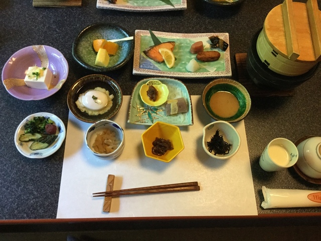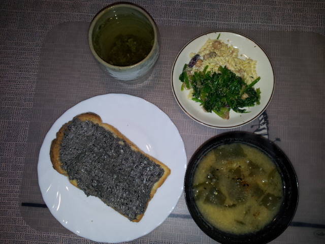 味噌汁と玉子焼きとシラス、ご飯の上に青海苔