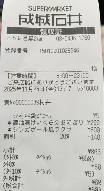 子どもがしびれを切らして大泣き、急いで成城石井に駆け込みテイクアウトに切り替えました。