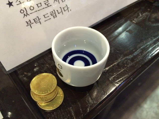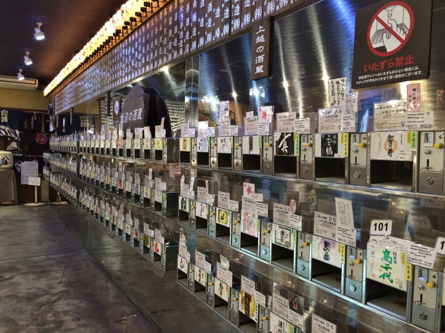 500円で5枚のメダルが渡されまして、メダルごとにお猪口一杯の日本酒がいただけるというもの。セルフサービスですが大量の銘柄から選ぶことができます。