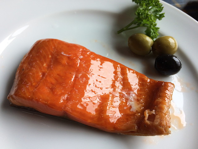 オーダーはメガサンドと、ホットスモーク(サーモン?)を二人でシェアすることに。