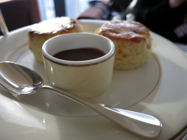 このスコーンにジャムとチーズクリームのようなものが合うんですよねぇ。ウマウマです。